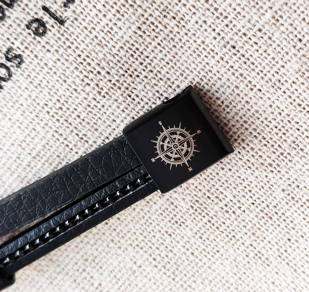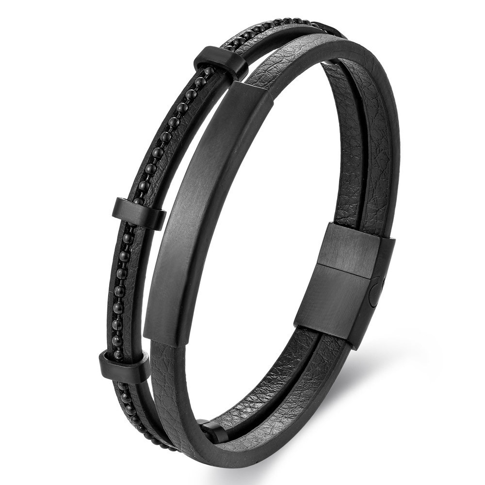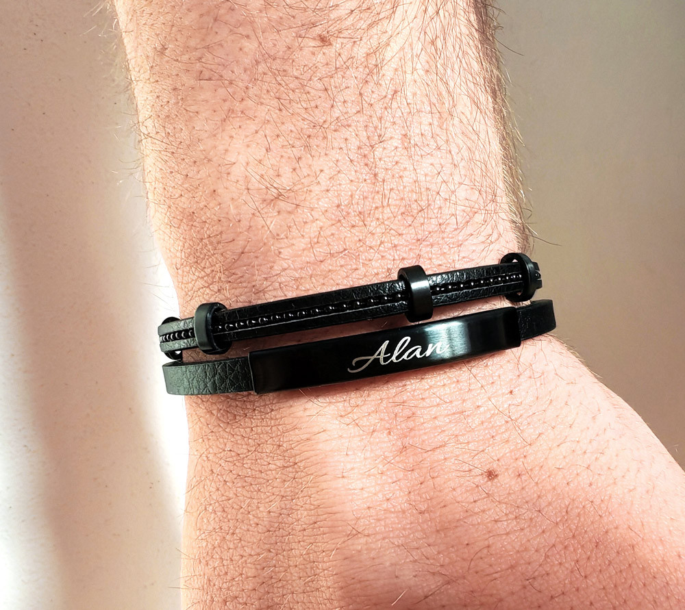 Pánský kožený ID náramek na gravírování BLACK