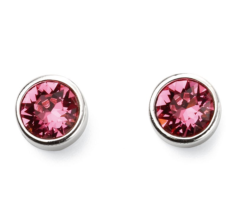 Stříbrné náušnice - růžový zirkon (Říjen)